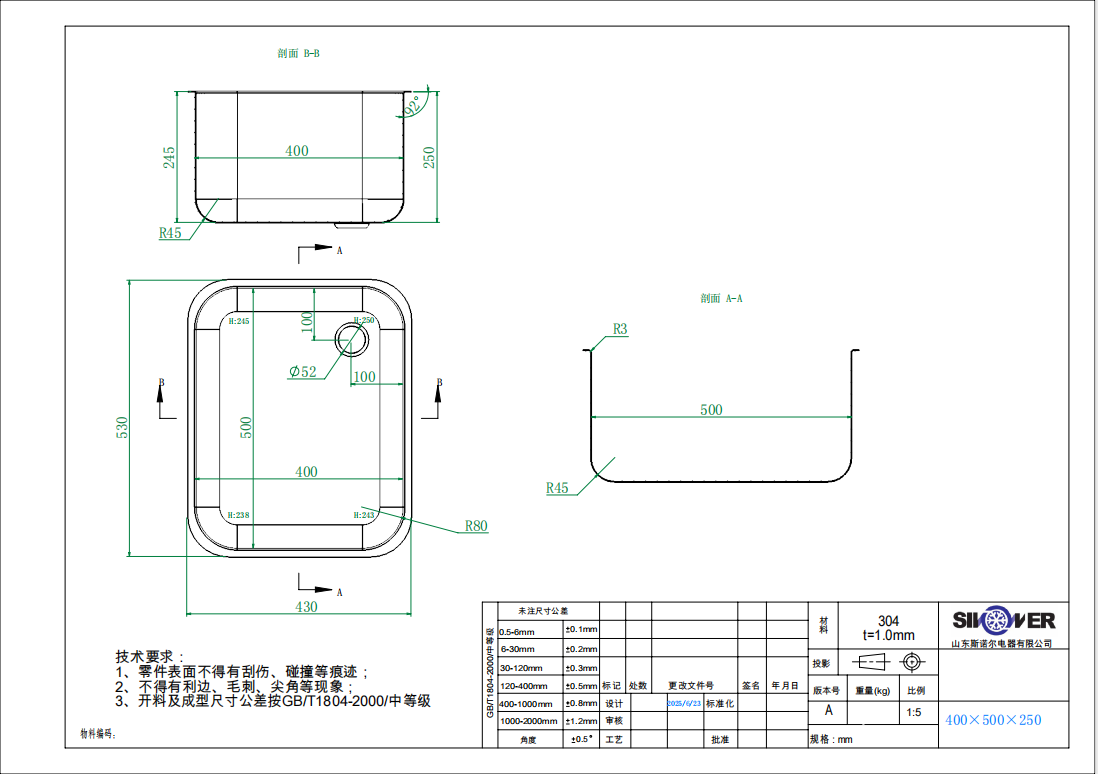 Avec ses dimensions 400 × 500 × 250 mm et une épaisseur de 1 mm, elle est idéale pour un usage professionnel dans les cuisines, laboratoires ou ateliers.