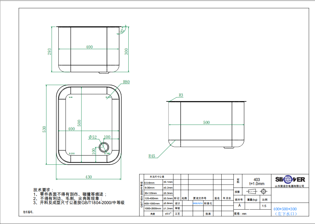 Avec ses dimensions 400 × 500 × 300 mm et une épaisseur de 1 mm, elle est idéale pour un usage professionnel dans les cuisines, laboratoires ou ateliers.