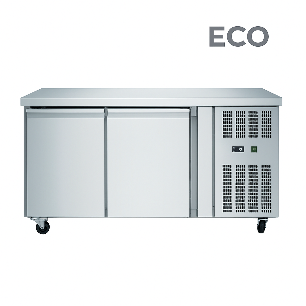 Table réfrigérée ventilée 2 portes SANS dosseret -2° à +8°C, 1360 x 700 x 860mm